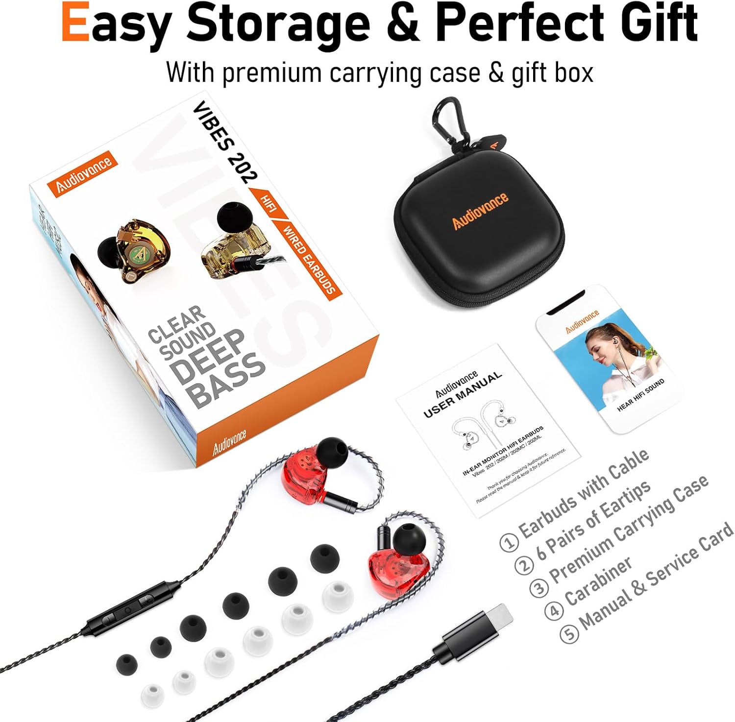 Audiovance Vibes 202ML HiFi Wired Earbuds – Red