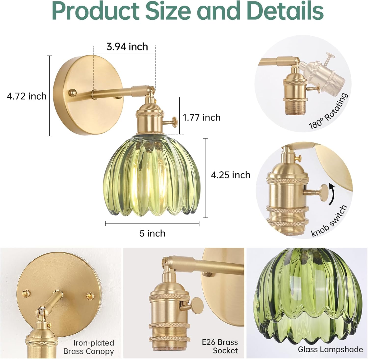, Tools & Home Improvement > Lighting & Ceiling Fans > Wall Lights > Wall Lamps & Sconces, #Vintage #Wall #Sconces #Cute #Green #Tulip #Glass #Lampshade #Degree #Adjustable..,