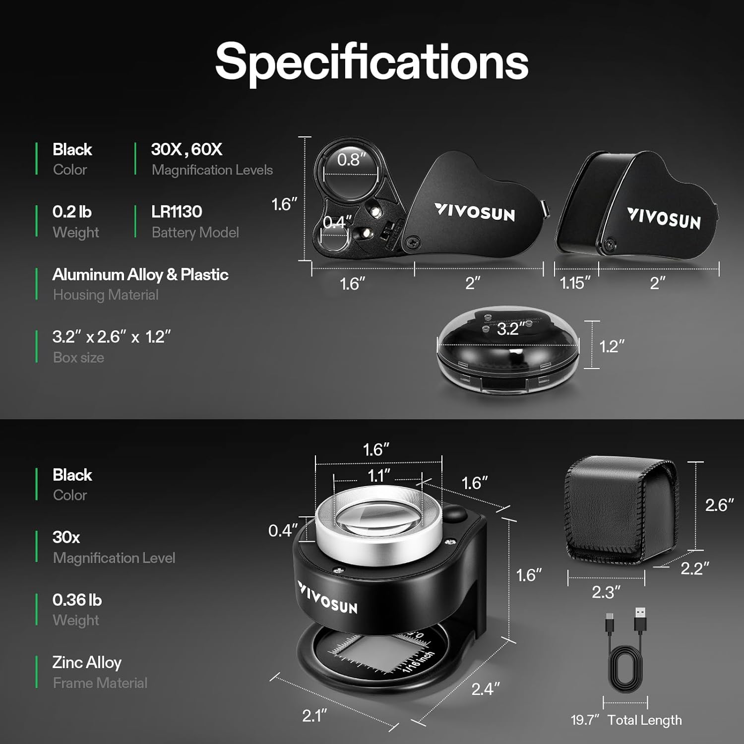 , Arts, Crafts & Sewing > Beading & Jewelry Making > Jewelry Making Tools & Accessories > Loupes, #VIVOSUN #2Pack #Jewelry #Loupe #30X #60X #Foldable #Magnifier #UVLED #Lights #Desk..,