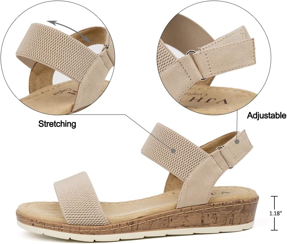 VJH confort Women’s Flat Sandals Open Toe Elastic Ankle Stra…