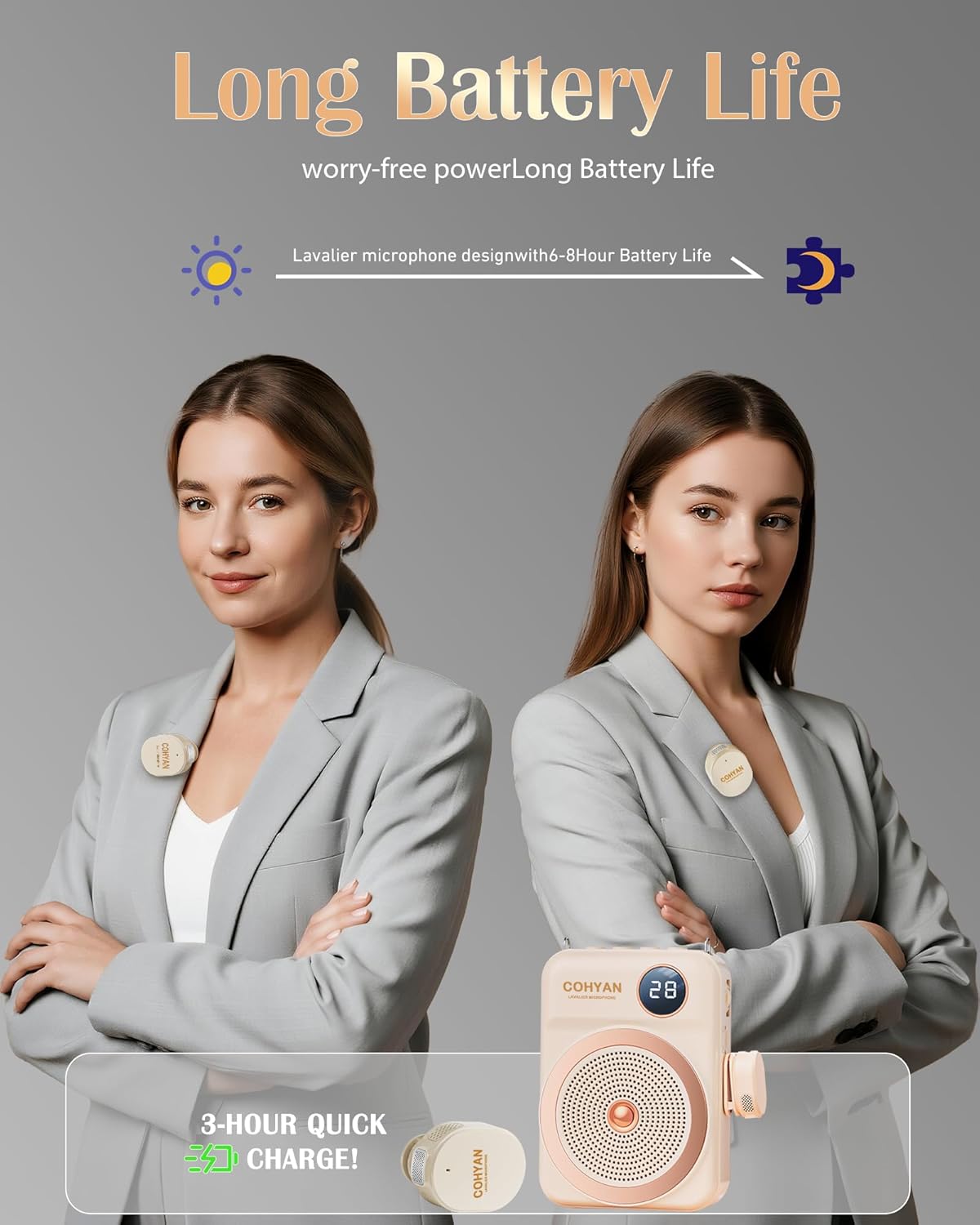 Review: This voice amplifier is lightweight, easy to use, good quality, and has a long battery life. A 3 hour charge gives you 7 plus hours of continuous use. This product comes with the voice amplifier, wireless microphone, USB cable, user manual, shoulder strap, and carrying case. I’m thrilled with the carrying case which makes for a safe storage and easy for on the go. The amplifier makes projecting your voice so much easier than having to yell. Its great for meetings, outdoor events, classrooms, and more.
