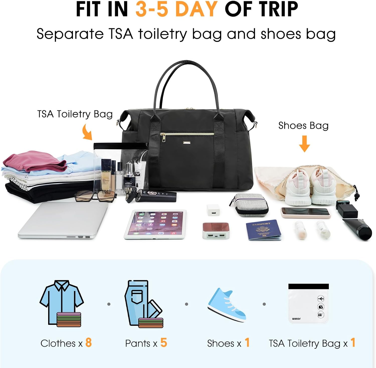 【SEPARATE TSA TOILETRY BAG】WANDF Travel Bag features an additional clear toiletry bag that complies with TSA 3-1-1 liquids rules, allowing security personnel to easily see the contents without having to open it, helps expedite the security screening process.
