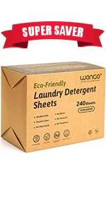 Equal to 150 Small Loads, pre-cut eco detergent sheets, you don't need to tear off by yourself if you only need for a small load of clothes.