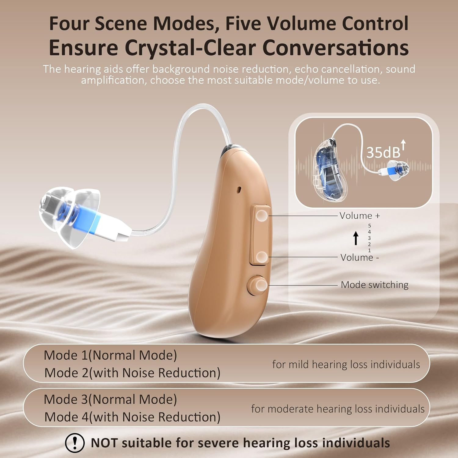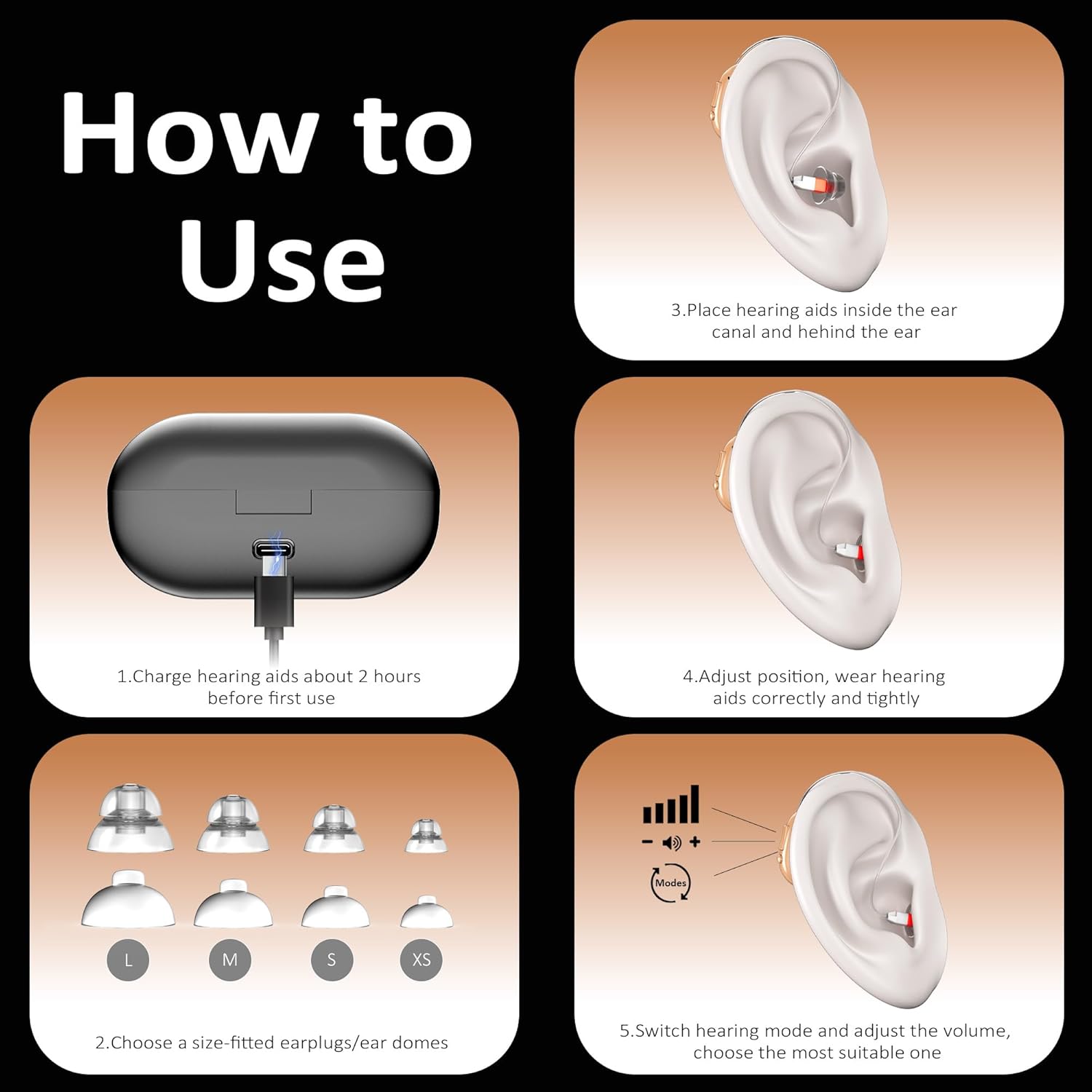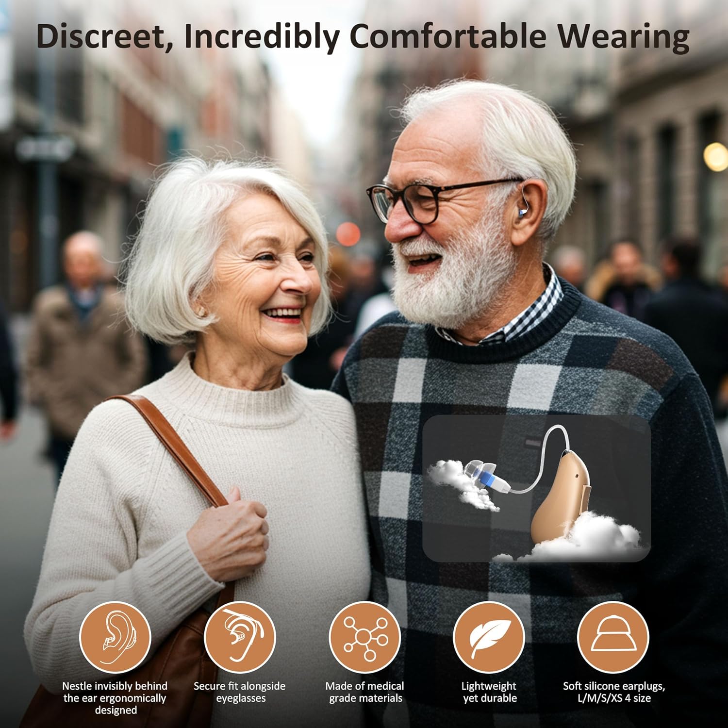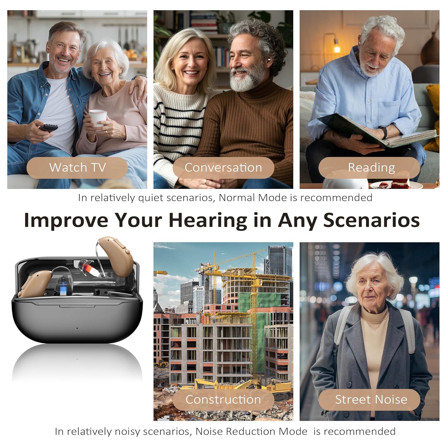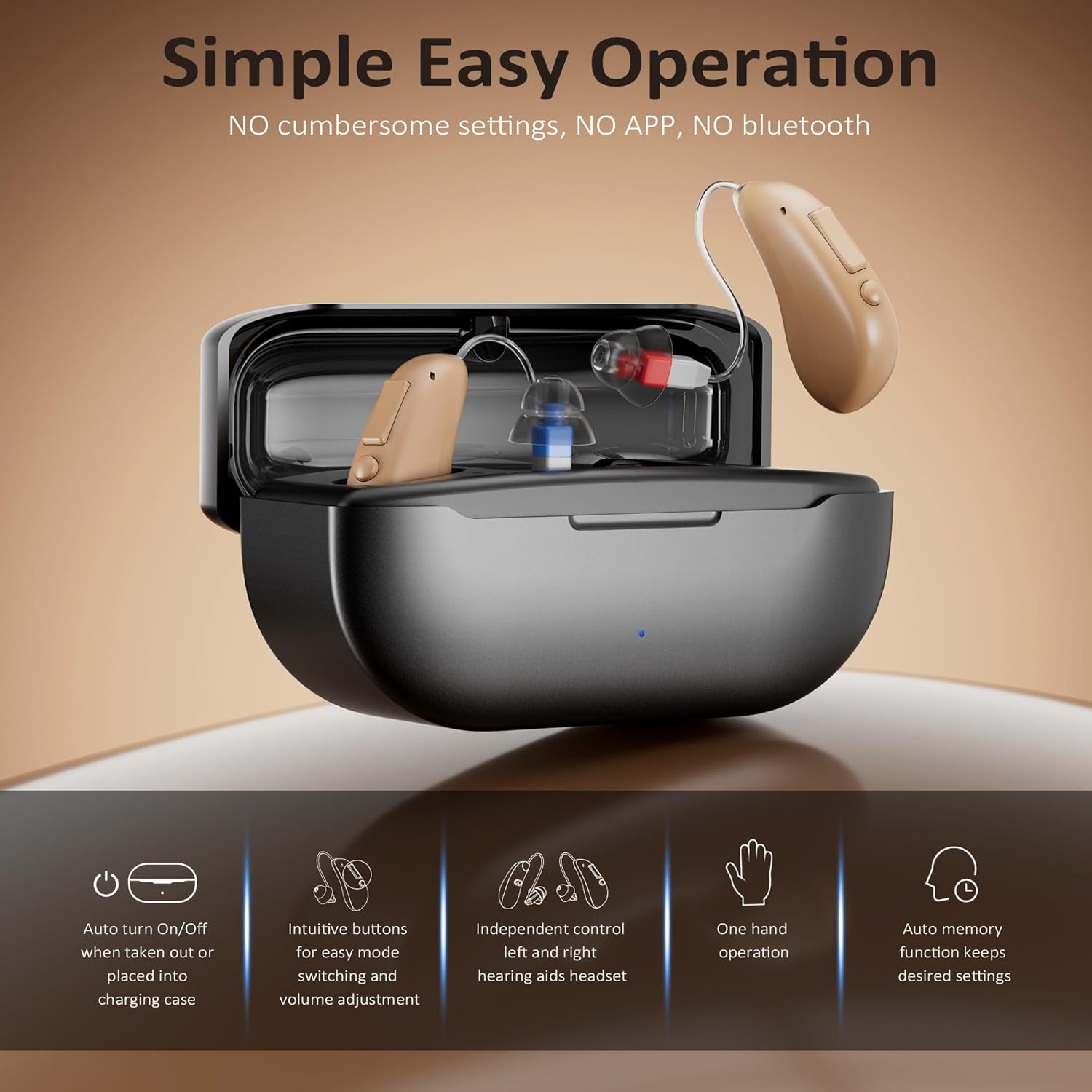 Review: I purchased these hearing aids for my grandmother, who is 94 years old, and the difference they have made in her daily life has been remarkable. Before using them, she often struggled to follow conversations, especially in settings with background noise. Now she can hear voices much more clearly, which has really improved her ability to stay engaged with family and friends.The sound quality is very good, with clear tones that don’t feel harsh or artificial. My grandmother especially notices that voices sound natural, which makes conversations easier and less tiring for her. The different listening modes are a nice touch, since she can switch depending on whether she’s at home in a quiet room or around more people. Having separate controls for each ear is also useful, since her hearing is slightly different on each side.Battery life has been another strong point. A full charge lasts her through the day, and the charging case makes it simple to recharge overnight. She doesn’t have to worry about replacing batteries, which is a big advantage at her age. The case is compact, so she can keep it nearby if she ever needs a quick boost.Comfort was something we were concerned about, but these are very lightweight and fit securely behind her ears. She wears them for hours without discomfort, and the included ear domes made it easy to find the right size. They’re also discreet, which she appreciates, since they don’t feel bulky or obvious.Another thing that has helped is how easy they are to use. She doesn’t need to deal with apps or complicated steps—just putting them in and adjusting with the simple buttons is enough. The automatic on/off when placed in the charging case has been especially helpful, since it takes away the need to remember one more step.Overall, these hearing aids have made a real difference for my grandmother. She feels more connected in conversations, enjoys watching TV again without blasting the volume, and doesn’t feel as isolated as before. For her age, having something comfortable, reliable, and straightforward to use has been very important. I’m glad we chose this model, and I would recommend them to other families looking for a good option for seniors with mild to moderate hearing loss.