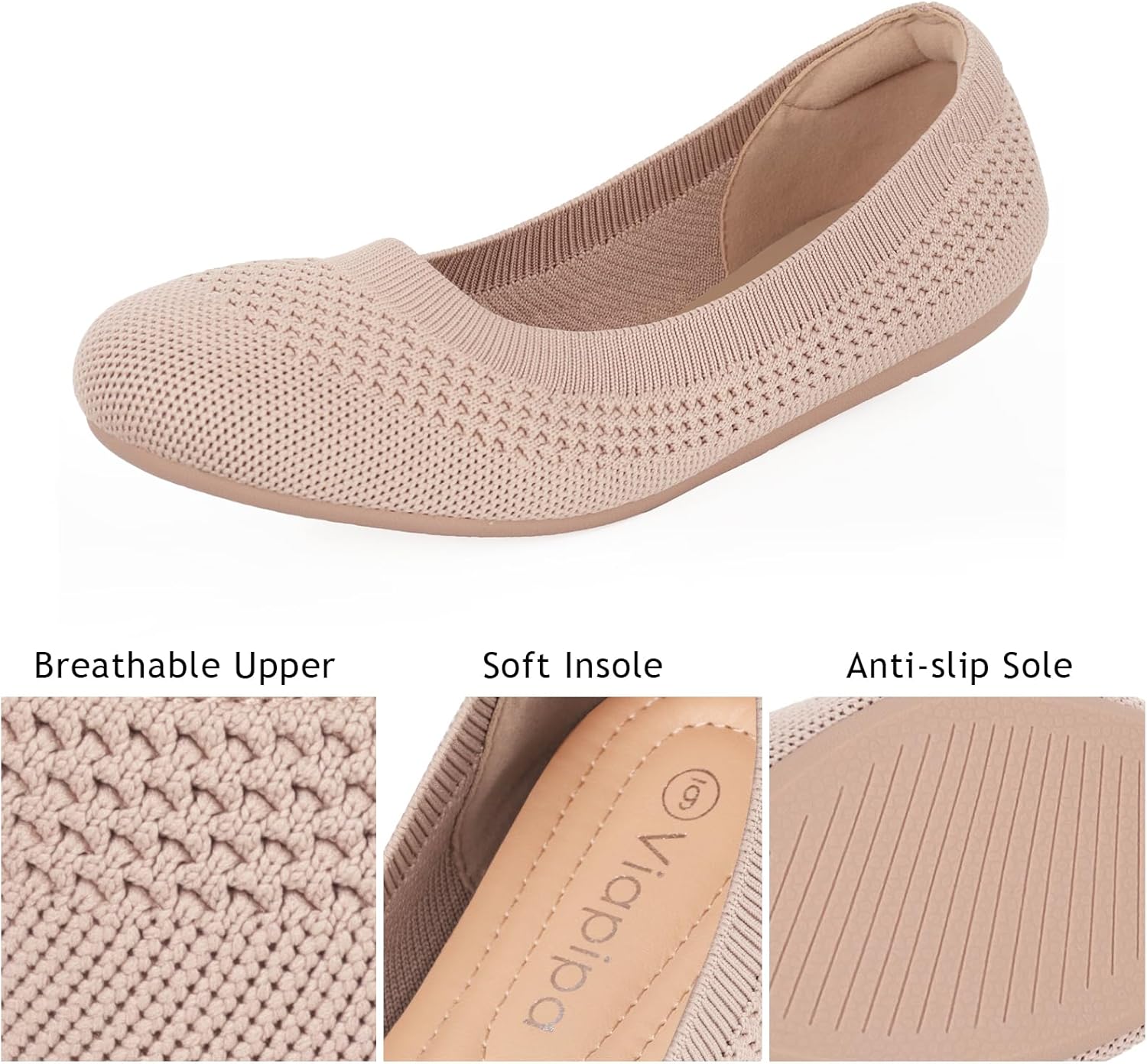 Women’s Ballet Flats Shoes Round Toe Slip On Knit Casual Dre…