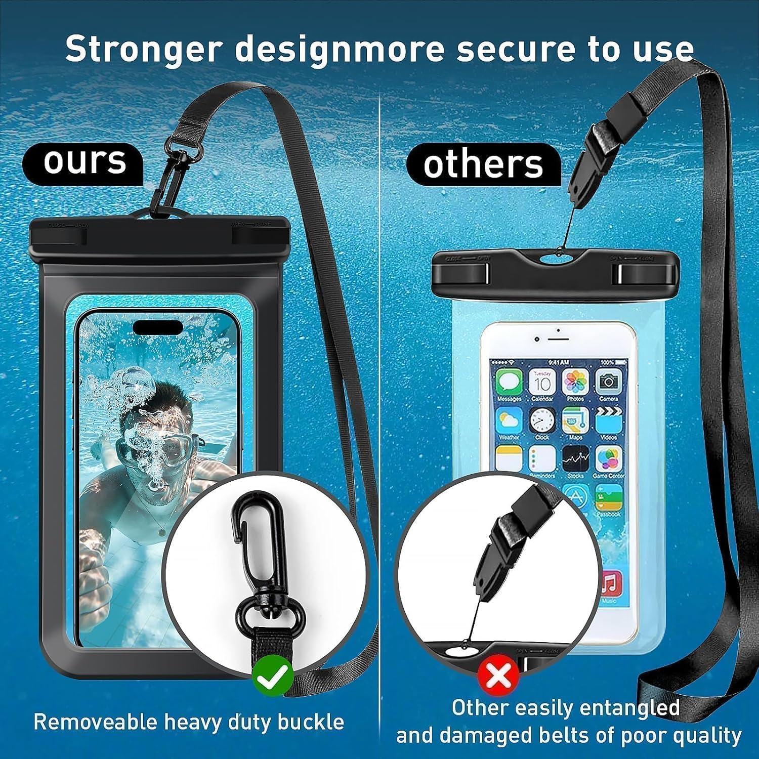 IPX8 Waterproof Protection: This waterproof phone pouch is professionally certified with IPX8 rating, featuring dual plastic side locks to tightly seal your cellphone. It provides superior protection against water, snow, dust, and sand