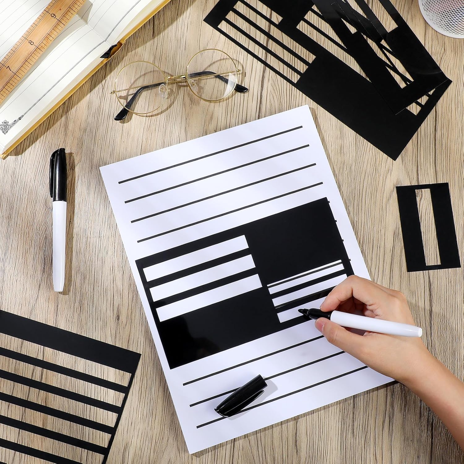 Writing guide kit letter writing guide set includes a writing guide set, including 10 writing guides, 20 low vision papers and 2 thick-tipped low-vision pens for elderly people with low vision