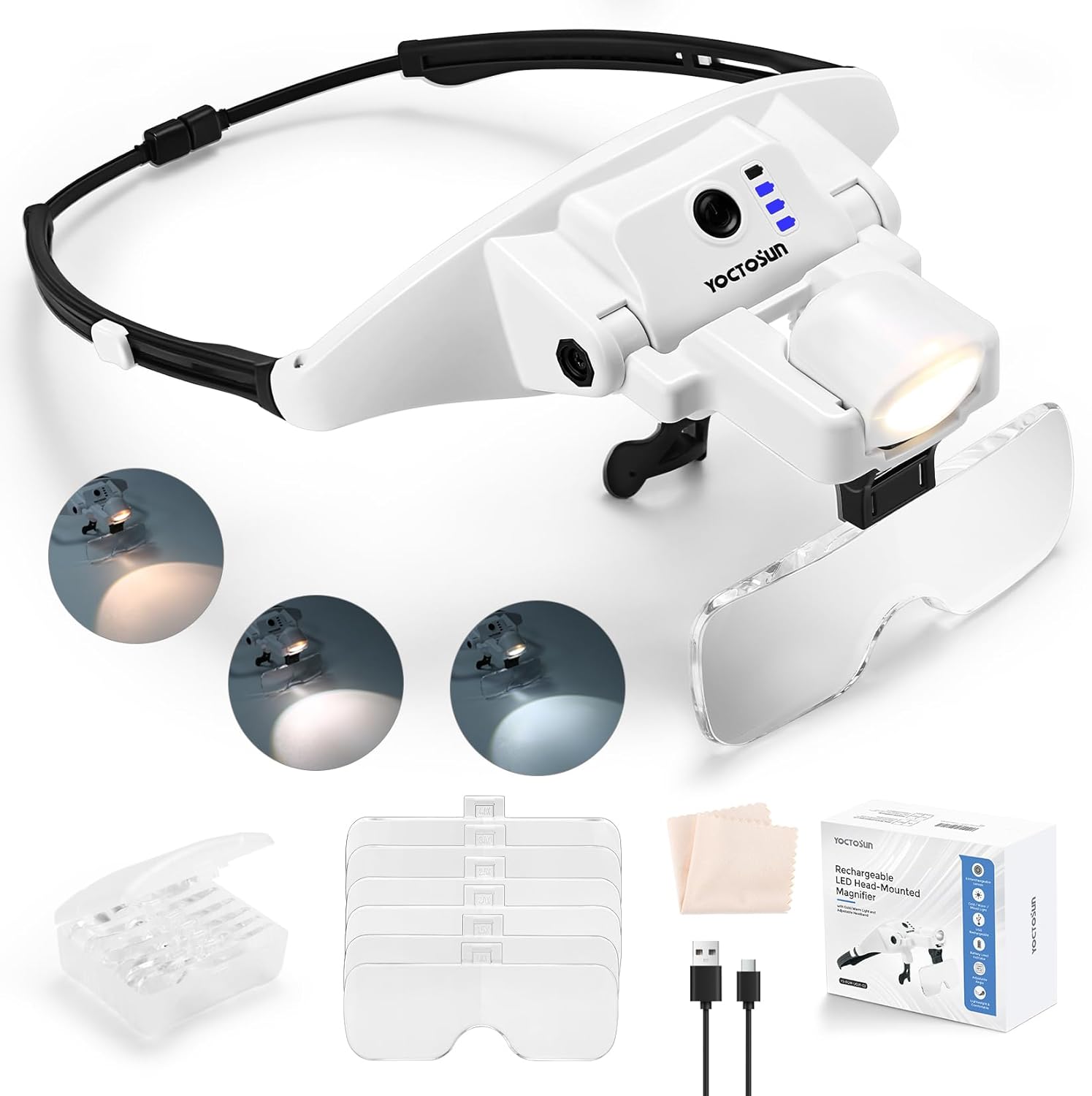 The YOCTOSUN Upgraded Headband Magnifier with 6 lenses, Adjustable three color modes, Retractable magnetic headband. Perfect Magnifying Glasses with Light for hobbyists and seniors who love crafts, sewing, diamond painting or working on detailed…