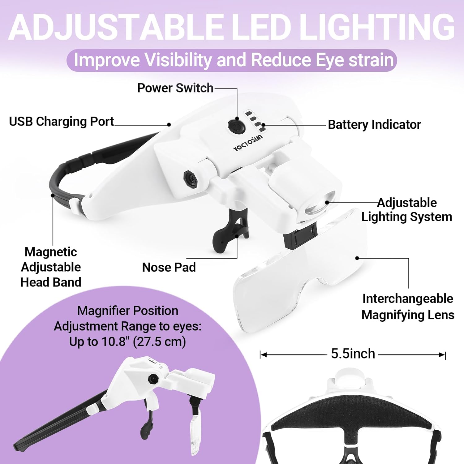 Title: Hands Free Head Magnifier with Adjustable Lighting, and Comfortable Fit. Can be Worn Over Glasses.